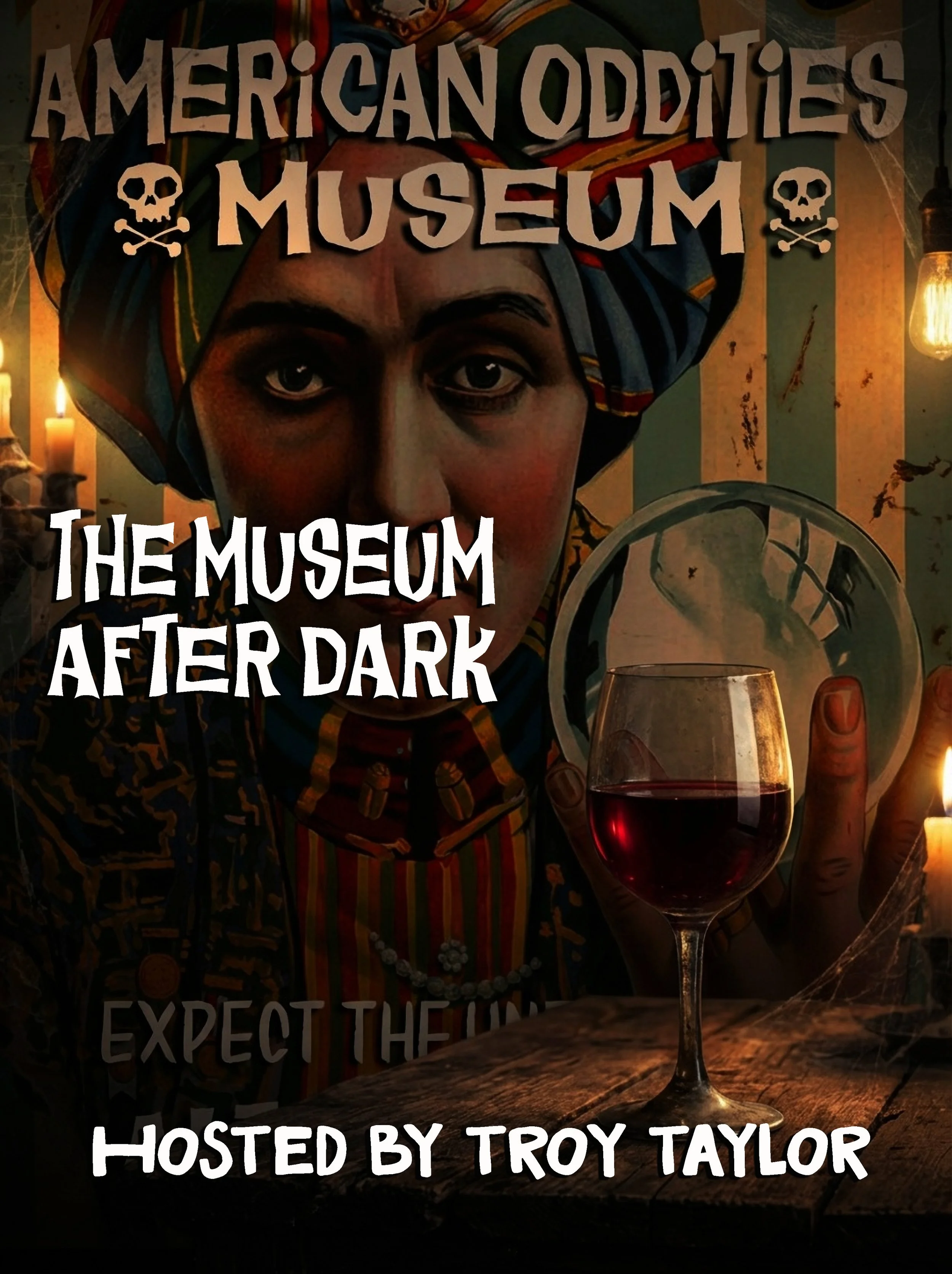 Join Troy Taylor and discover the American Oddities Museum during this private, adults-only evening event! Browse the museum during this eerie and eye-opening event, which includes ghostly tales of the building, some of our more spirited artifacts, and wine or a soft drink to enjoy while you explore! See another side of the museum on this spooky night!